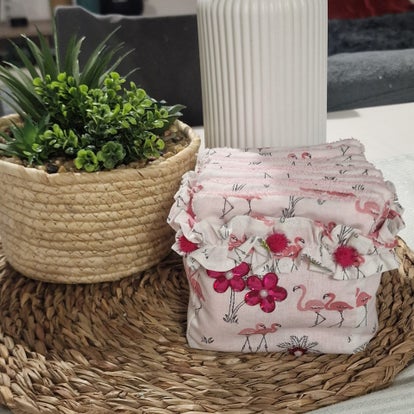 - Motif : Écossais (carreaux bleus, blancs et touches de jaune)