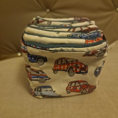 Ce porte-bijoux artisanal en coton est à la fois pratique et élégant. Sa forme ronde permet de le refermer facilement grâce à un lien en ruban, transformant ainsi une pochette plate en un petit sac à bijoux.